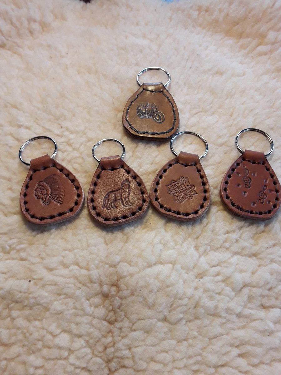 Petits porte-clés en cuir bovin naturel décoré, teint, et cousu main