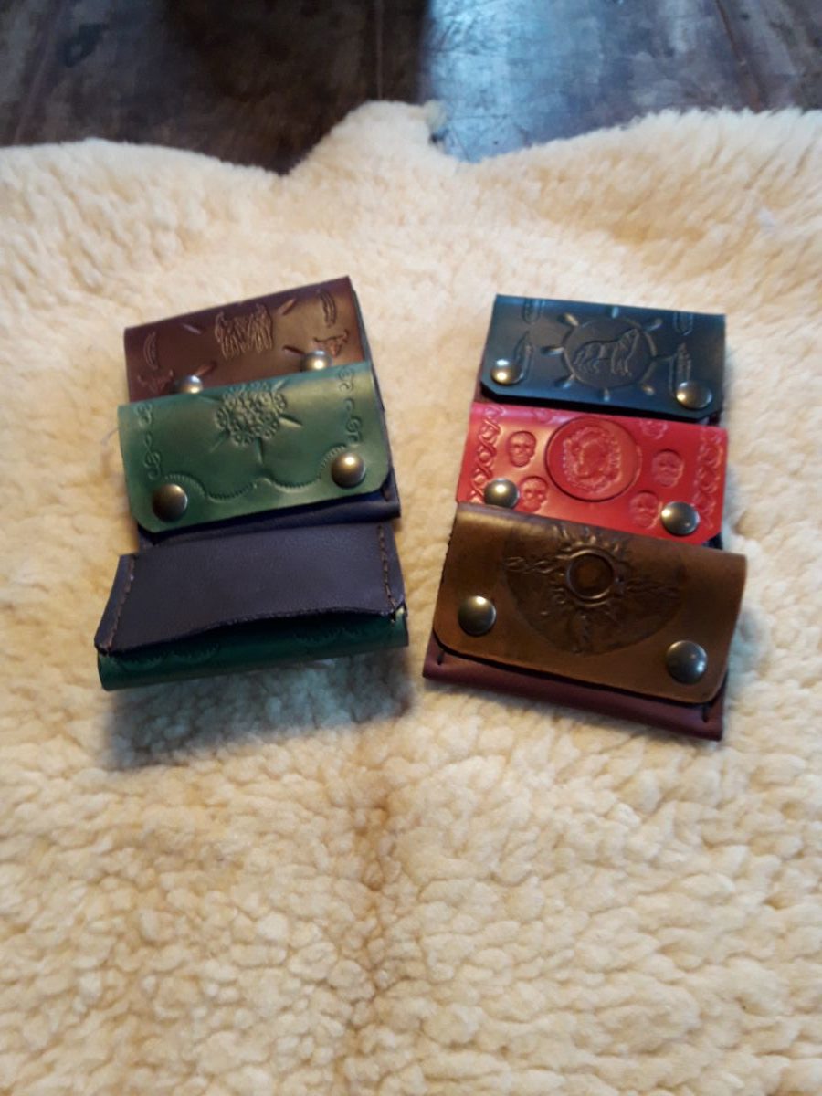 Porte-monnaie en cuir d'agneau. Patch de couleurs
