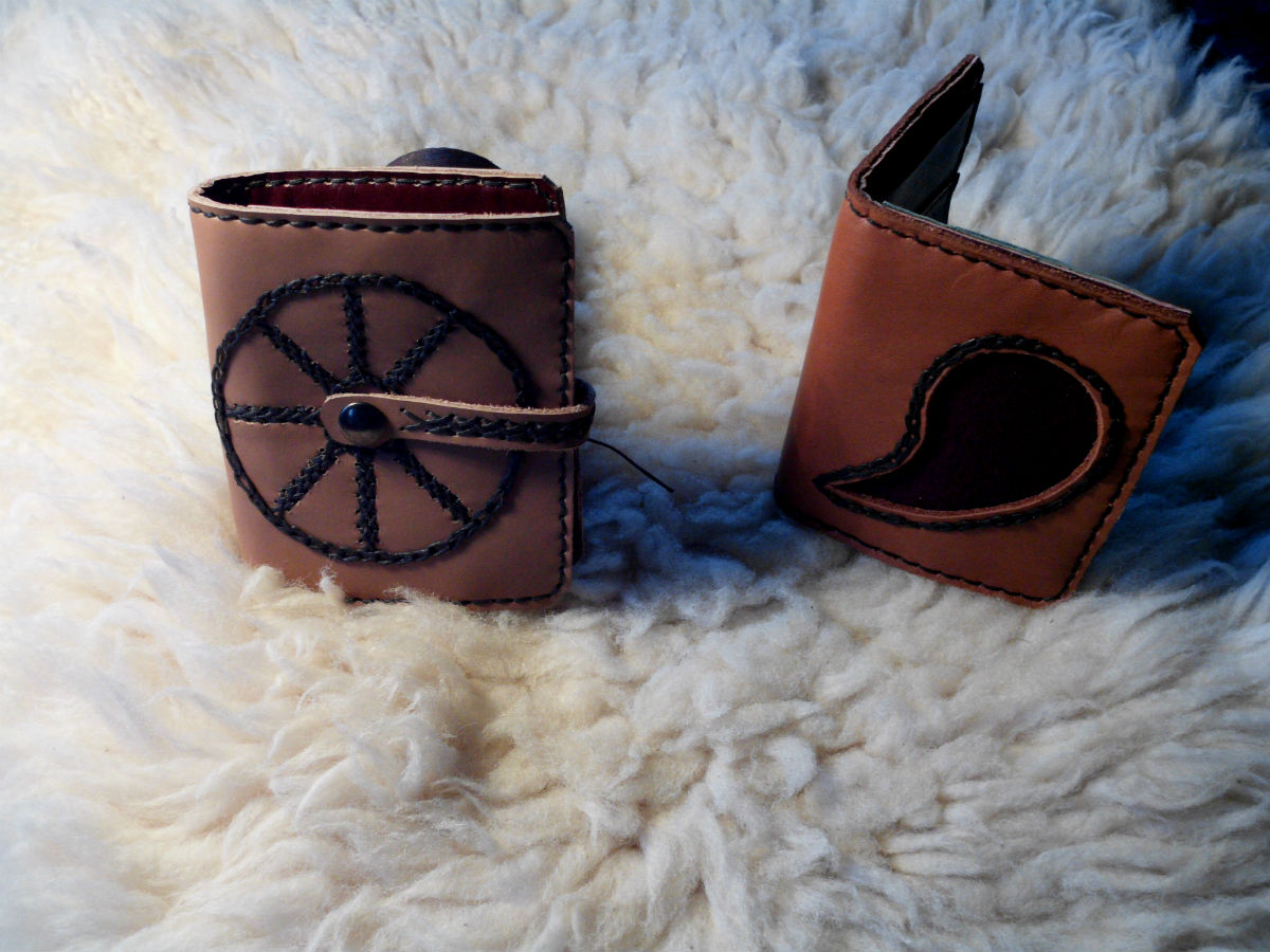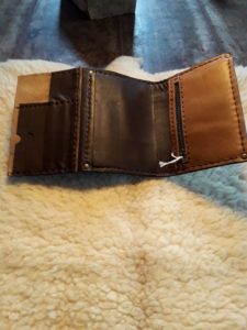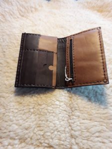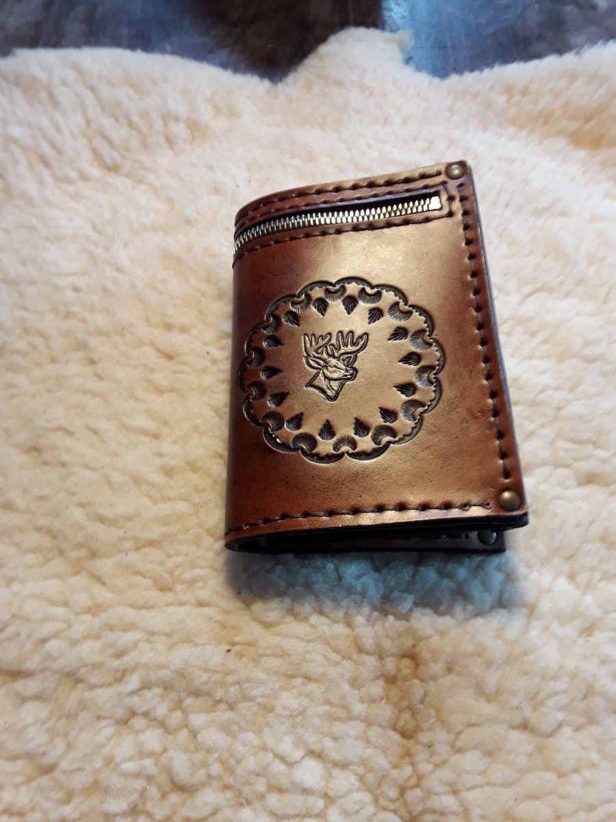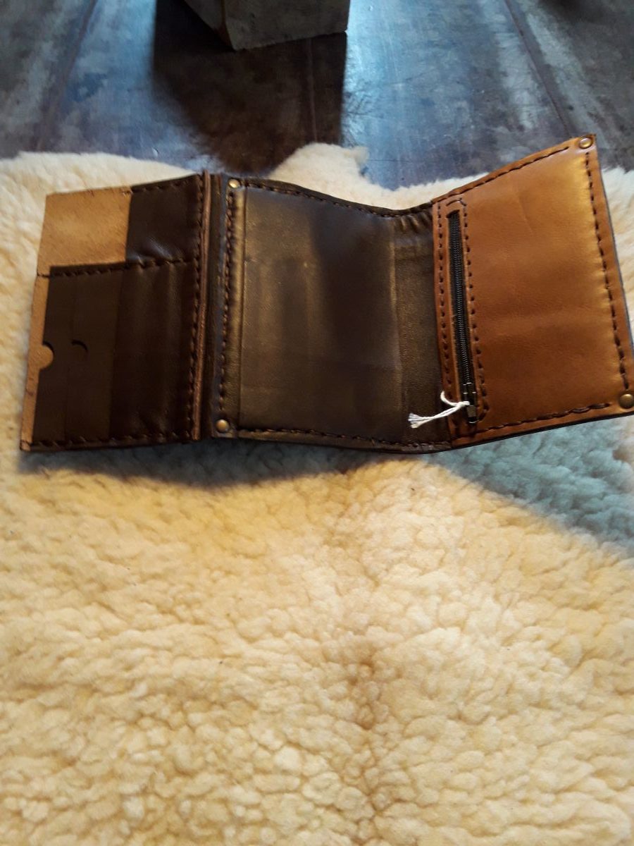 Portefeuille à l’ancienne travaillé, teint et cousu main